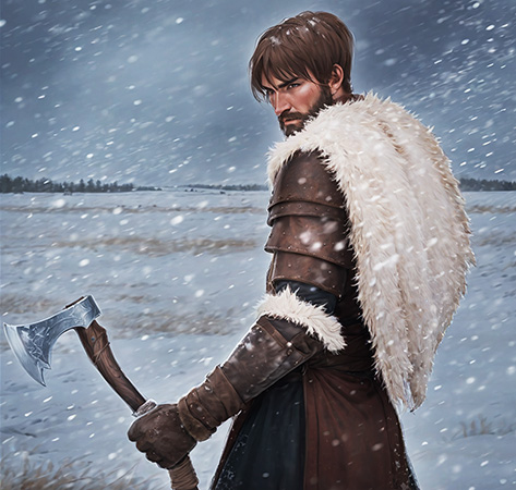 Когда степь застыла под снегами, появился он — странник-ратник, закалённый в холоде и бурях. Меховой плащ ложится на плечи, будто покров древних духов. Он оглядывается через плечо, прислушиваясь к отголоскам старых легенд, что живут в этих землях. Его путь — защитить слабых и хранить мир. |