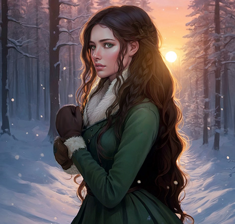 Зимняя девица-берегиня идёт по лесной тропе, неся в сердце тепло заката и шепот древних сосен. Мех на её воротнике дрожит от прохлады, а следы в снегу мерцают, оставляя за собой маленькие узоры на снегу, как благие знаки на пути. Каждый, кто пройдет мимо — получит благословение или испытание по заслугам. |